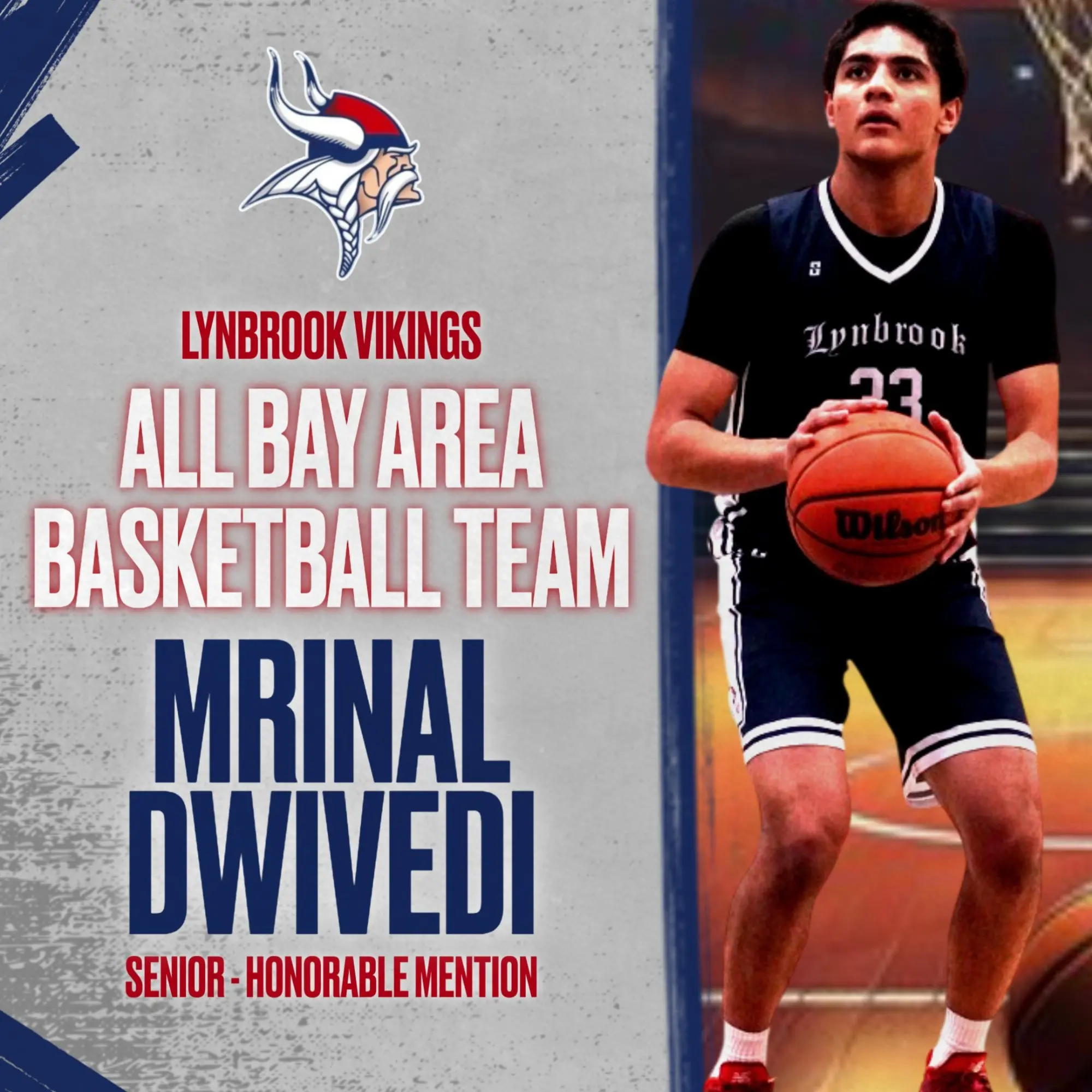 Congratulations to Mrinal Dwivedi who was named Honorable Mention on the All Bay Area Basketball Team!